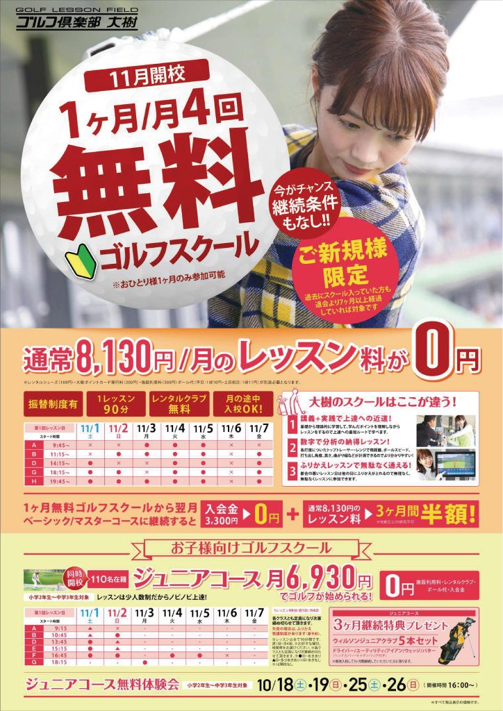 1カ月無料ゴフルスクールから翌月【ベーシック/マスターコース】に継続すると、 入会金3,300円→0円!+ 3カ月間、月々8,130円→月々半額の4,065円!