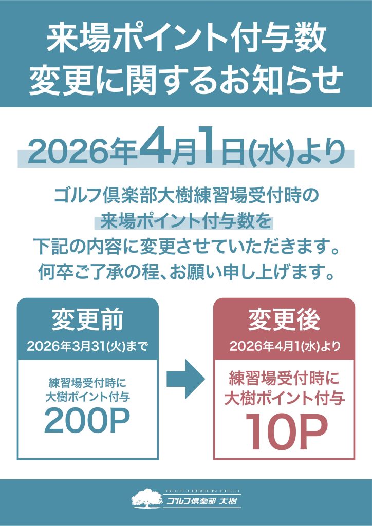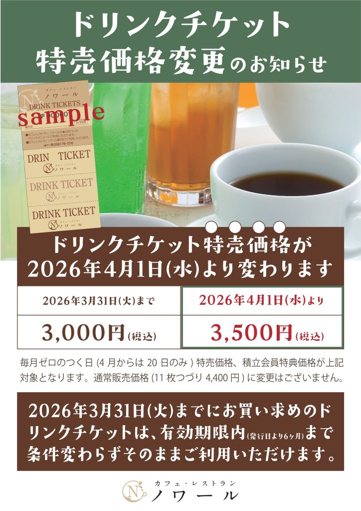 【来場ポイント付与数変更】【ドリンクチケット特売価格変更】のお知らせ