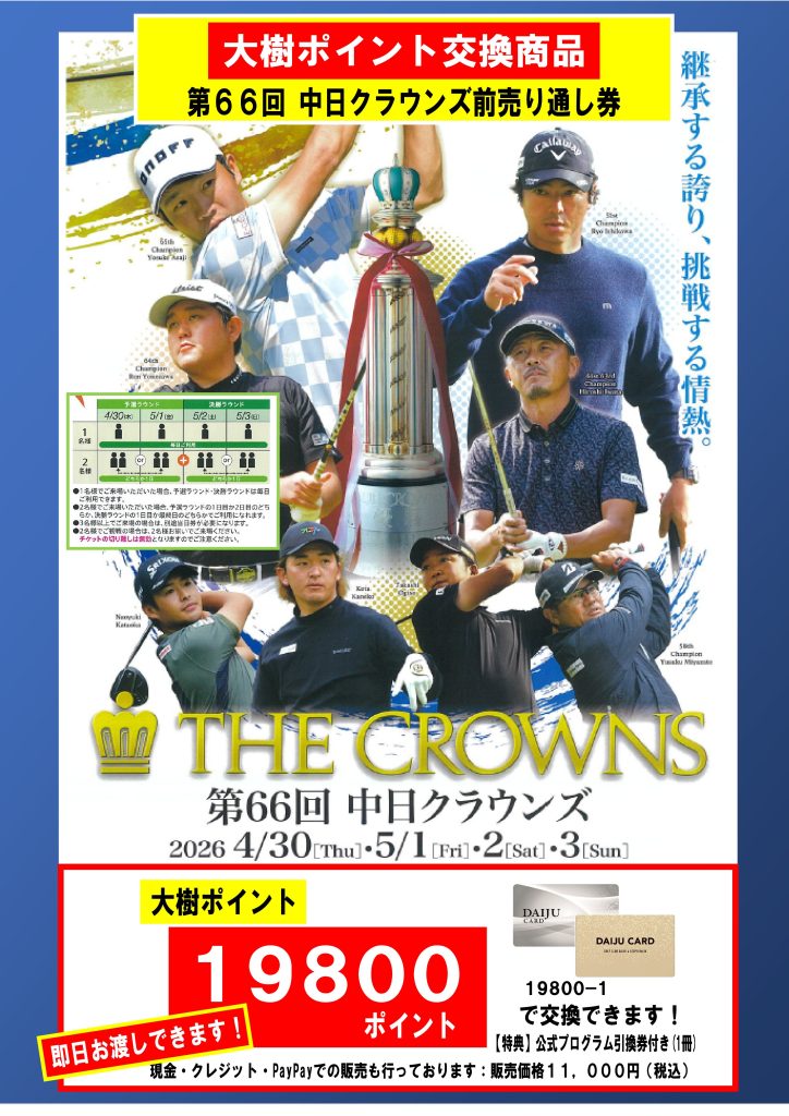 【大樹ポイント交換商品】中日クラウンズ前売りチケット