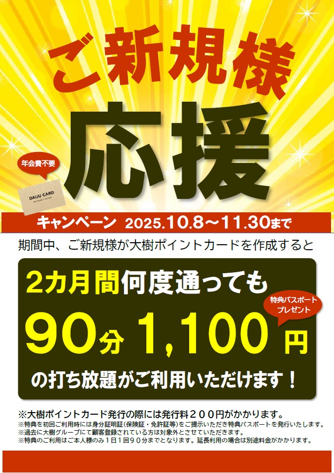 ご新規様限定‼大樹ポイントカード発行キャンペーン
