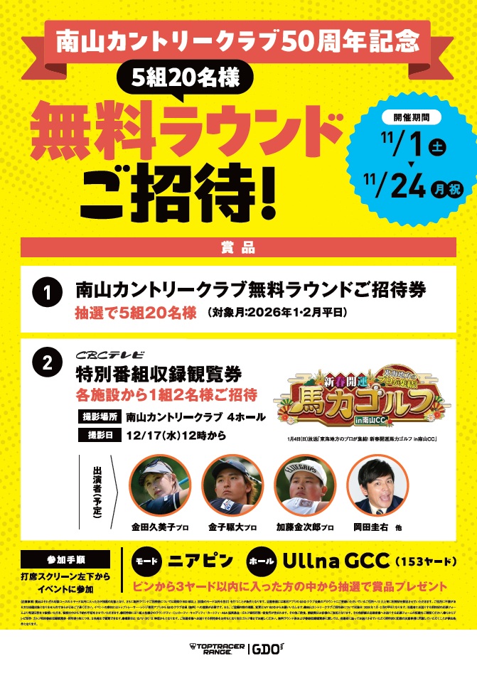 11/1~11/24開催ニアピンイベントに参加して南山CC無料ラウンドを獲得しよう!